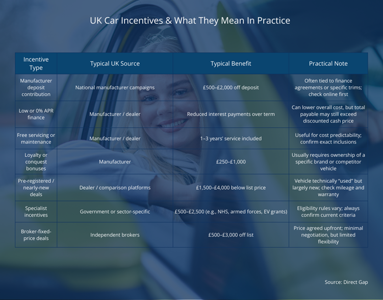Table: UK new car incentives & what they mean in practice